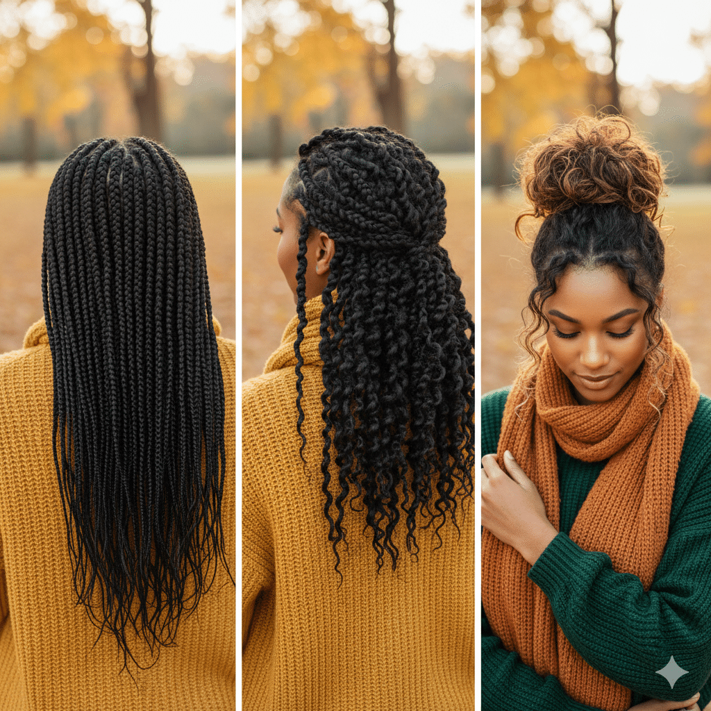 Pour limiter les agressions (vent, froid, frottements), rien de tel que de mettre votre cheveu à l’abri. Les coiffures protectrices sont vos meilleures alliées durant les saisons froides. C’est particulièrement vrai pour les cheveux crépus et frisés, dont les pointes sont les parties les plus anciennes et les plus fragiles. Mettre son cheveu en “vacances” limite la manipulation et donc la casse, ce qui peut aider à retenir la longueur et favoriser la pousse des cheveux.